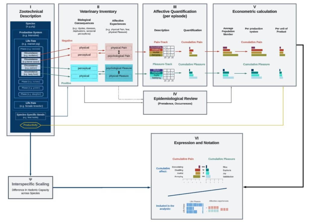 The Welfare Footprint Framework provides a structured approach to evaluating animal welfare. It is divided into distinct analytical blocks, illustrated in this Figure.